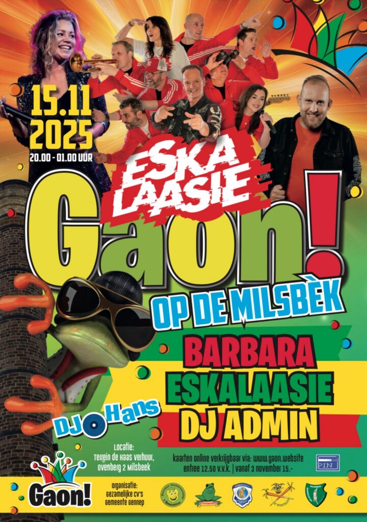 De gemeentelijke opening van de carnaval Gaon! is dit jaar in Milsbeek.
